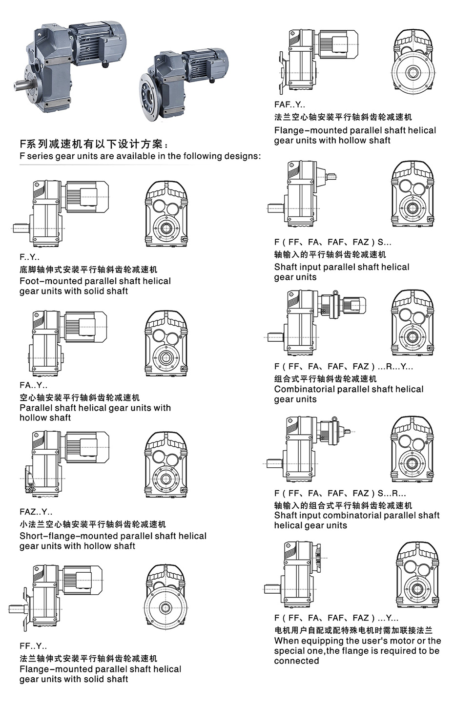 结构形式:F-轴伸,底脚安装 FA-轴安装连接; FF-轴伸,法兰安装 FAF-轴伸,法兰安装; F…S-表示轴输入