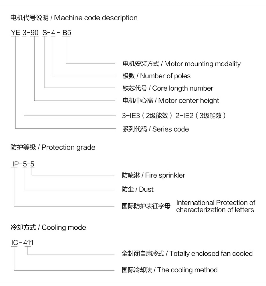 YE系列为三相异步通用电机,分YS普通三相异步电机;YE2 YE3高效能三相异步电机